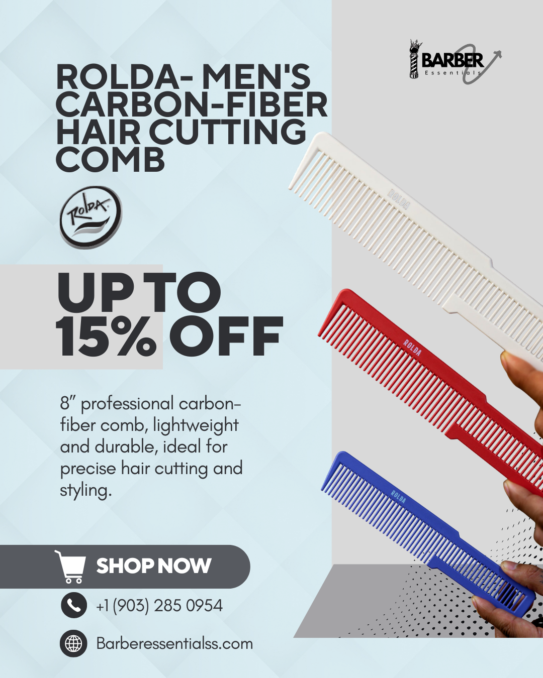 Rolda Men’s Carbon-Fiber Hair Cutting Comb is an 8-inch professional-grade comb engineered for precision and durability. Made from high-quality carbon fiber, it’s heat-resistant, anti-static, and lightweight, ensuring smooth glides without snagging. Ideal for sectioning, cutting, and styling in both barber and salon settings.